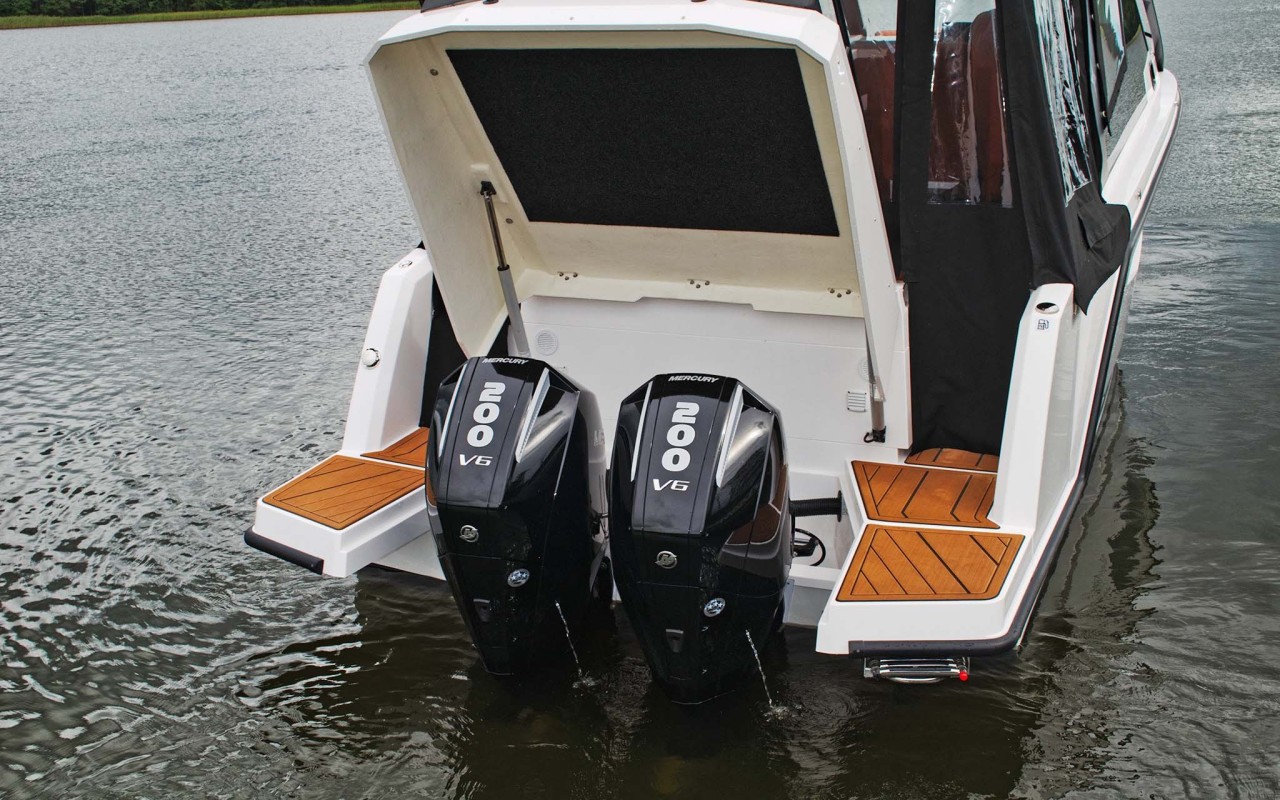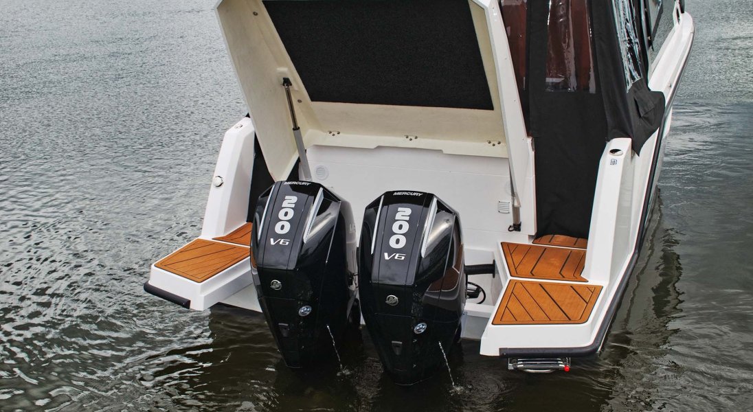 Dall'esigenza di un compromesso nasce questo motoscafo, equipaggiabile con 2 motori fuoribordo con un massimo di 450hp ed una velocità di navigazione massima intorno ai 30 kn.