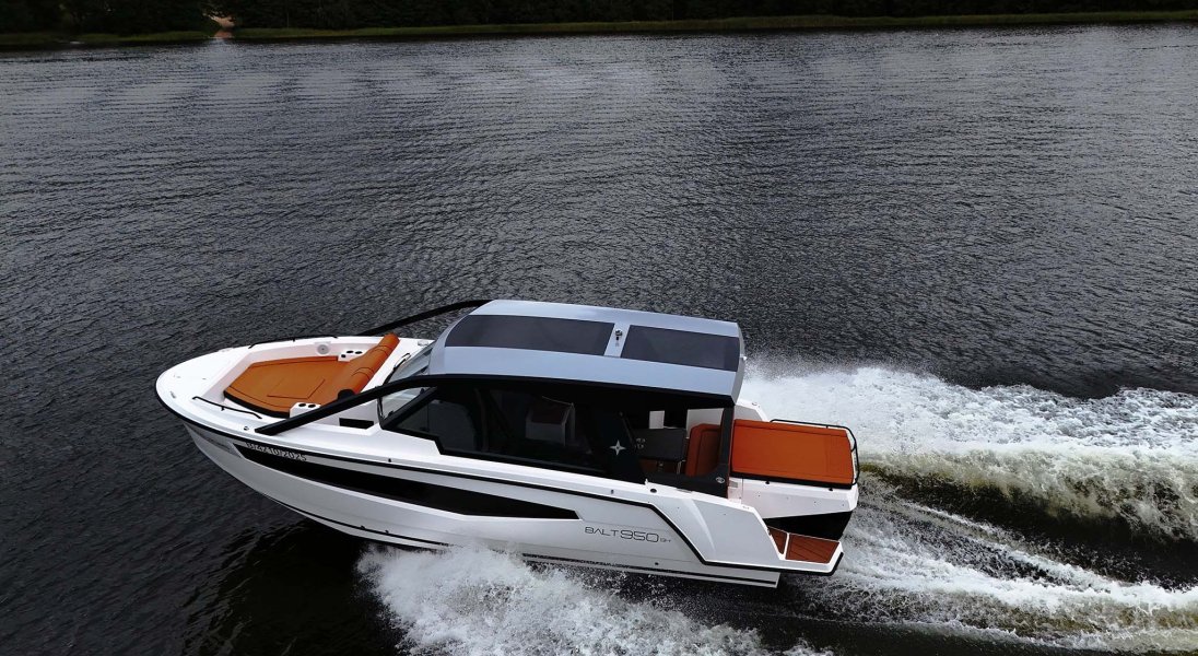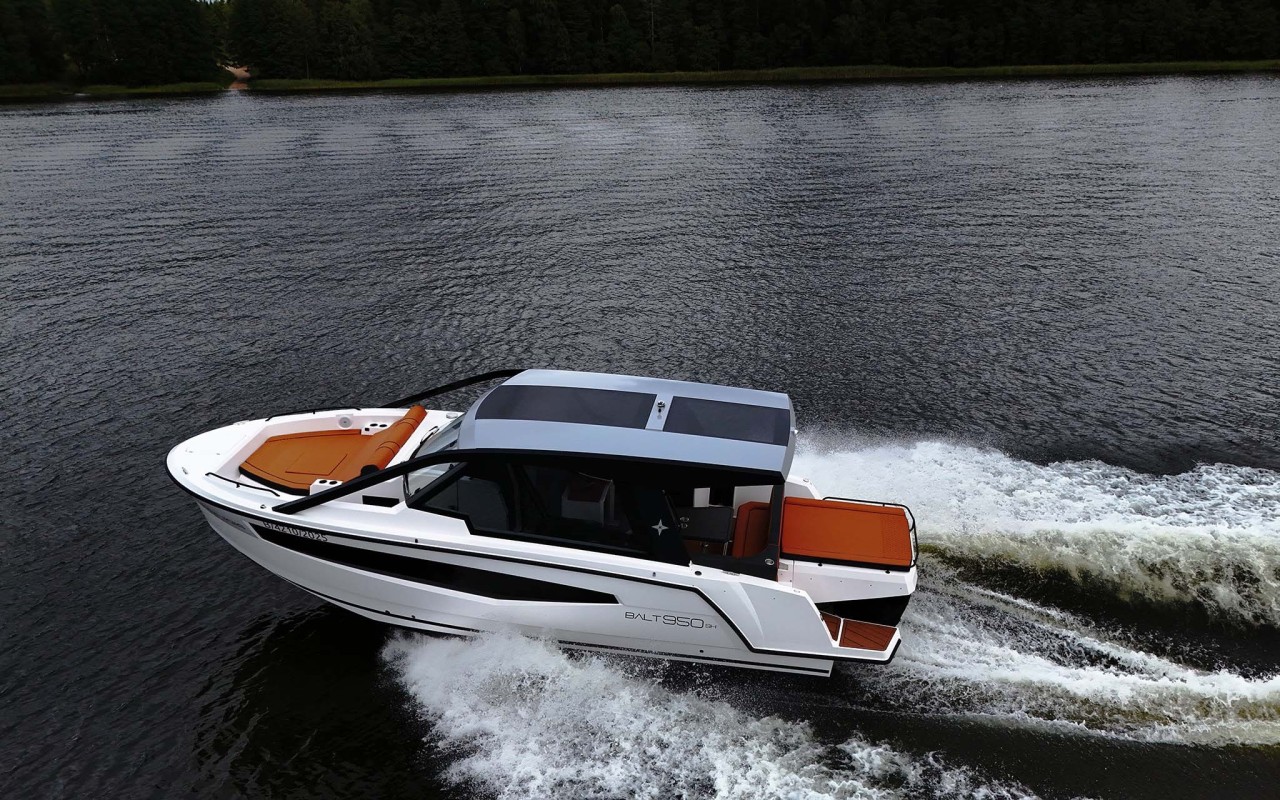 Un natante planante con ampi prendisole e spazi esterni, per navigazione marittima, senza rinunciare ad un'ottima abitabilità e grandi spazi interni.