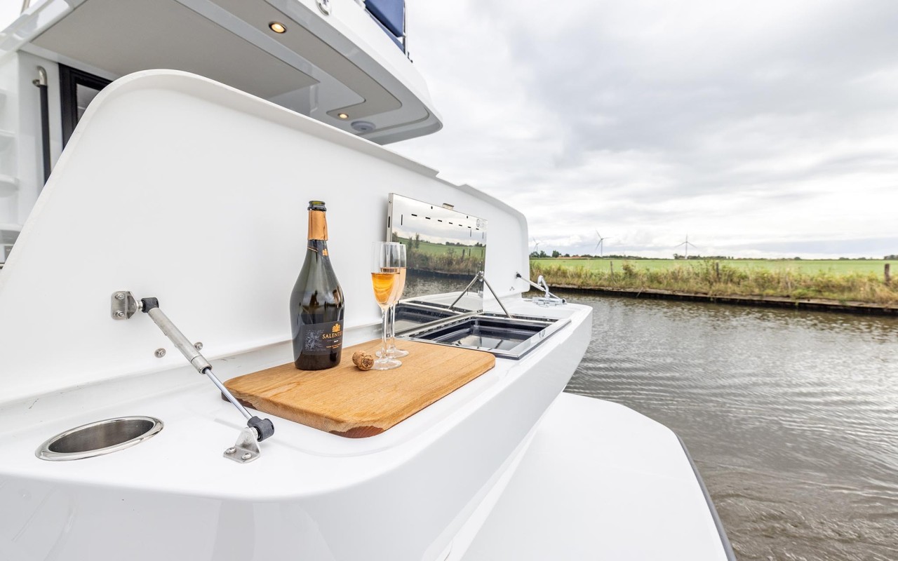 Un natante dislocante che si distingue per eleganza e comodità. Consumi ridotti e autonomia incredibile, uniti ad uno stile nordico impreziosito da finiture di livello superiore, fanno di questo yacht l'oggetto ideale per una navigazione d'altura lenta per chi ama contatto con il mare piuttosto che la velocità di punta. La qualità della vita a bordo è impressionante, con tutte le cabine ed i bagni a tutt'altezza, dove puoi stare in piedi come a casa