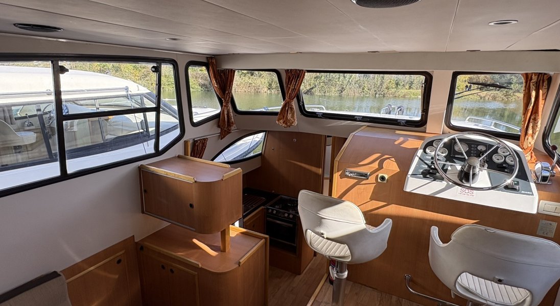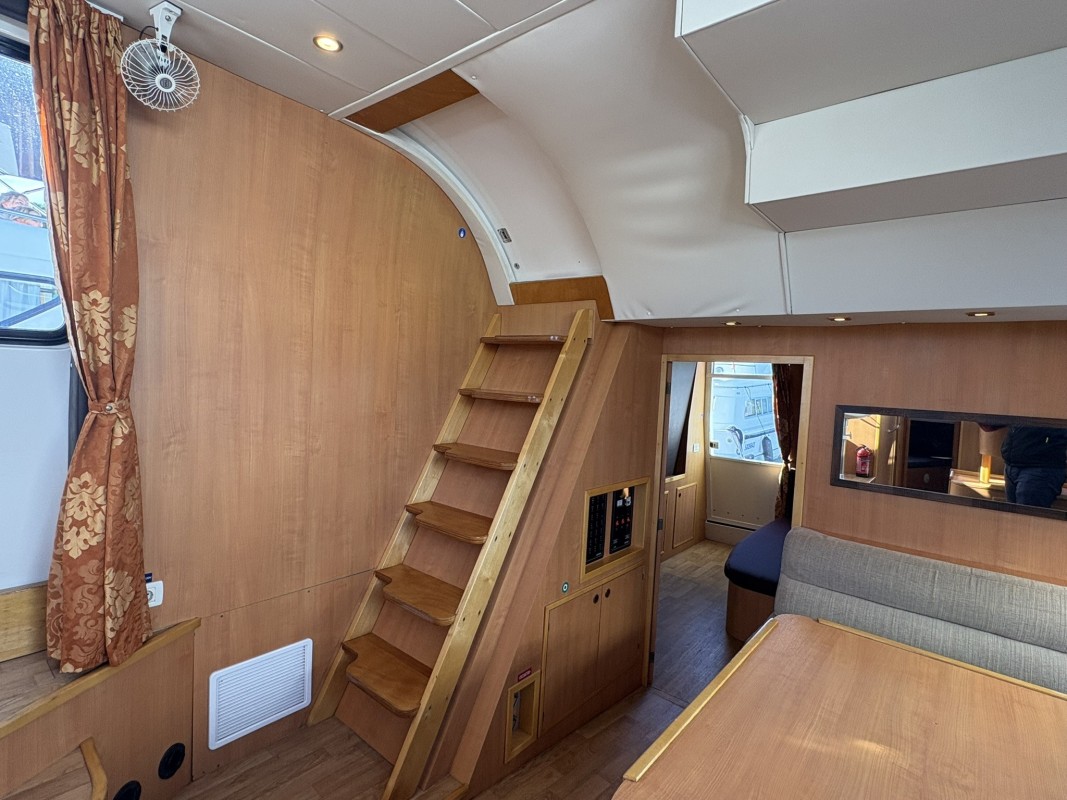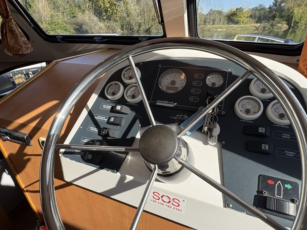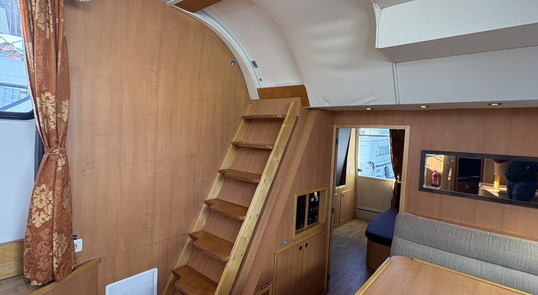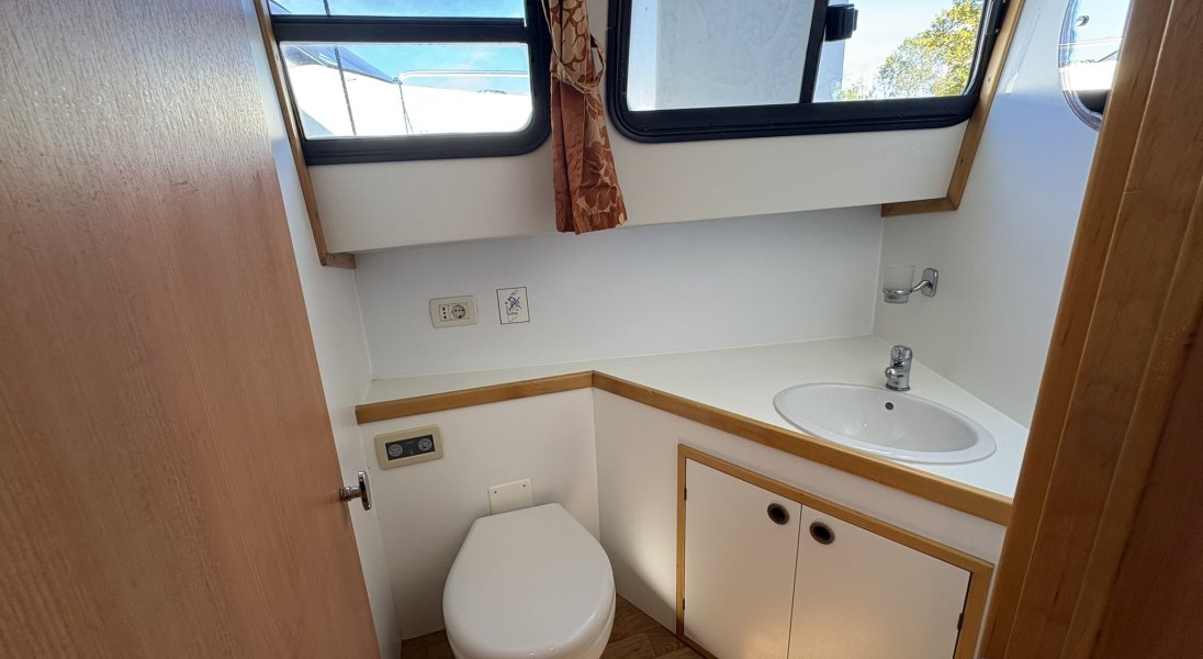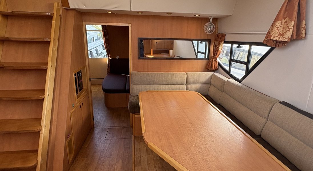 È una classica houseboat fluviale di impostazione nordica con una abitabilità incredibile, altezze come a casa, ed un piccolo motore diesel singolo. È adatta alla navigazione in acque protette o con mare molto calmo.