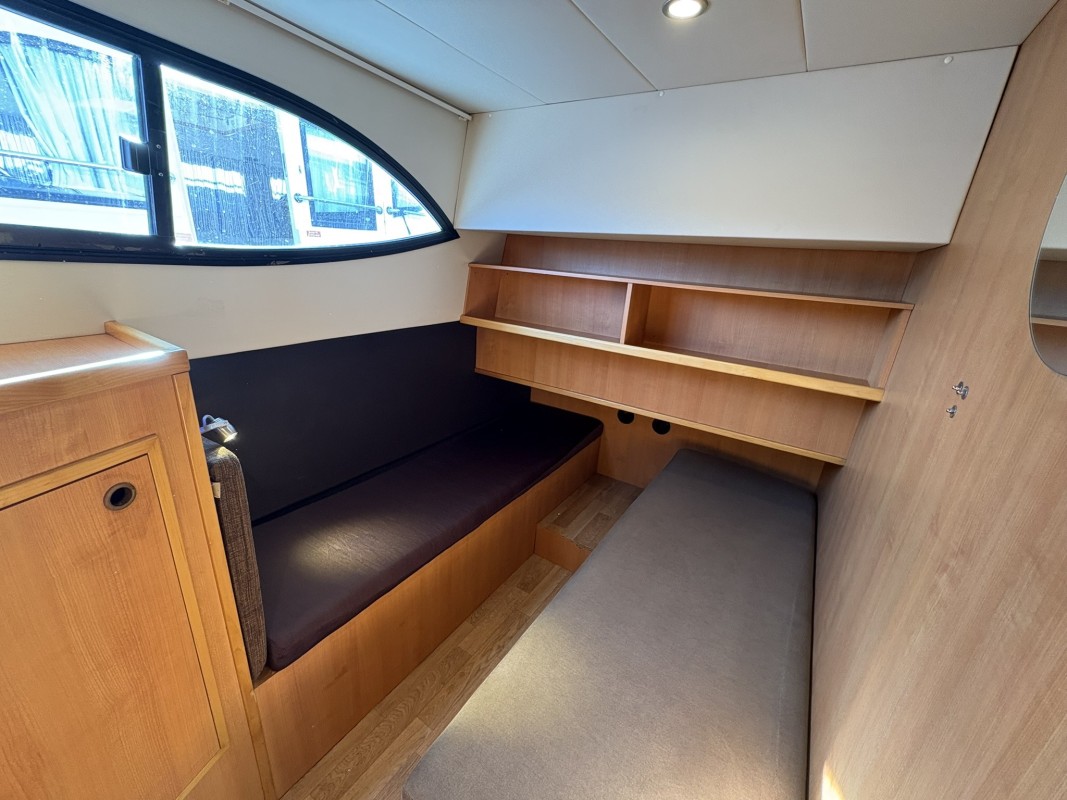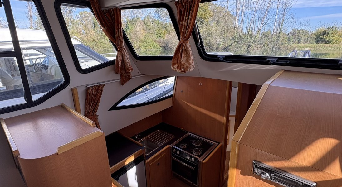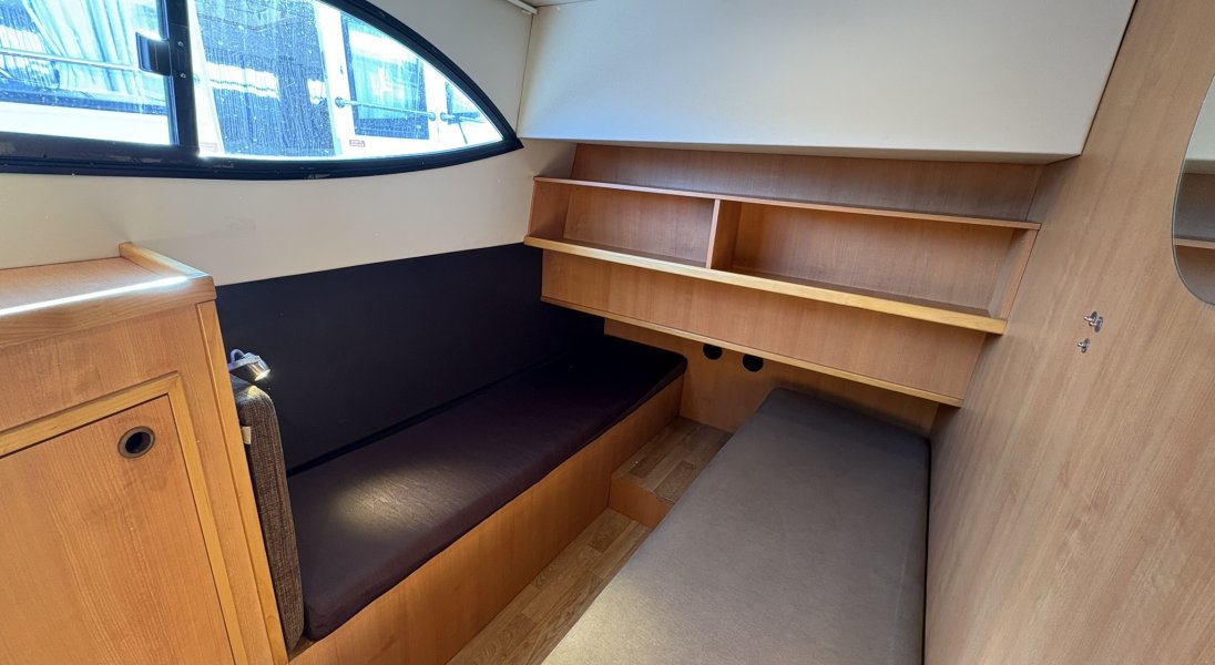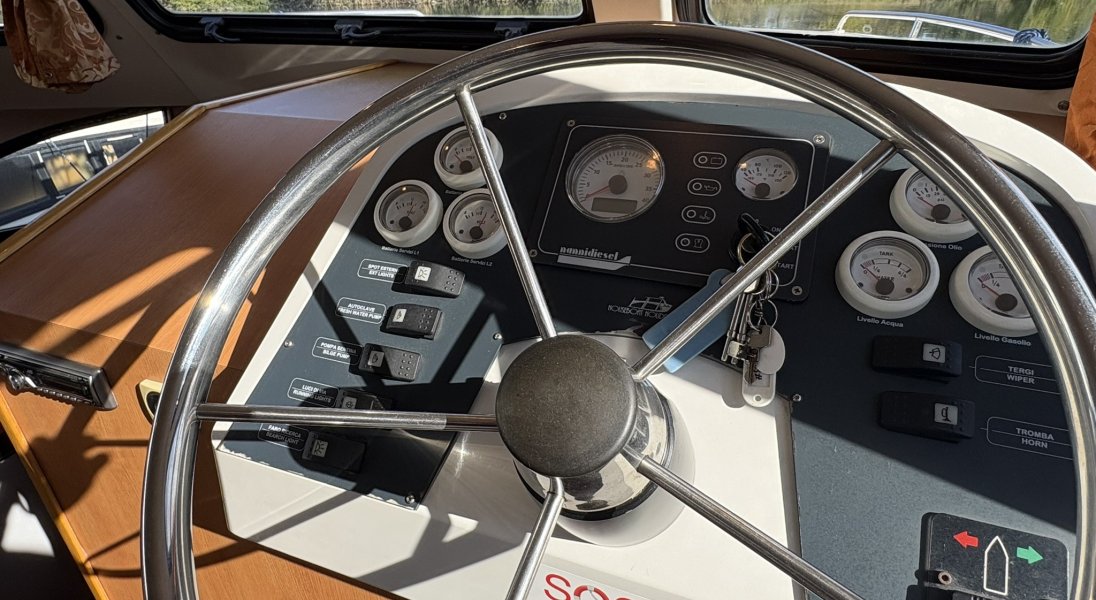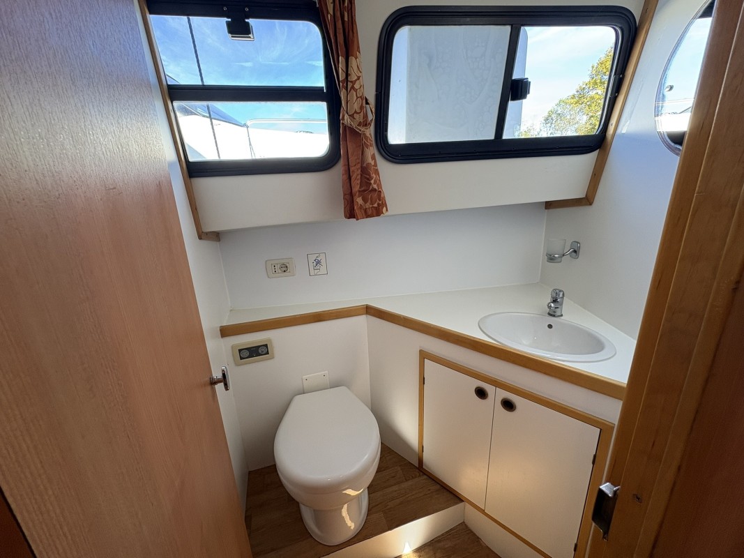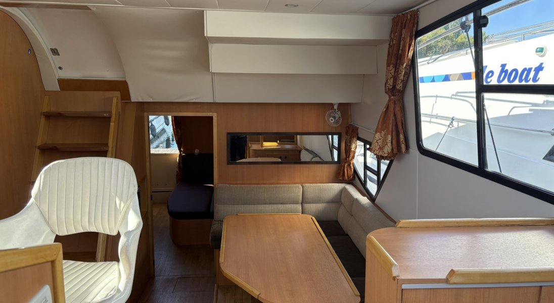 È una classica houseboat fluviale di impostazione nordica con una abitabilità incredibile, altezze come a casa, ed un piccolo motore diesel singolo. È adatta alla navigazione in acque protette o con mare molto calmo.
