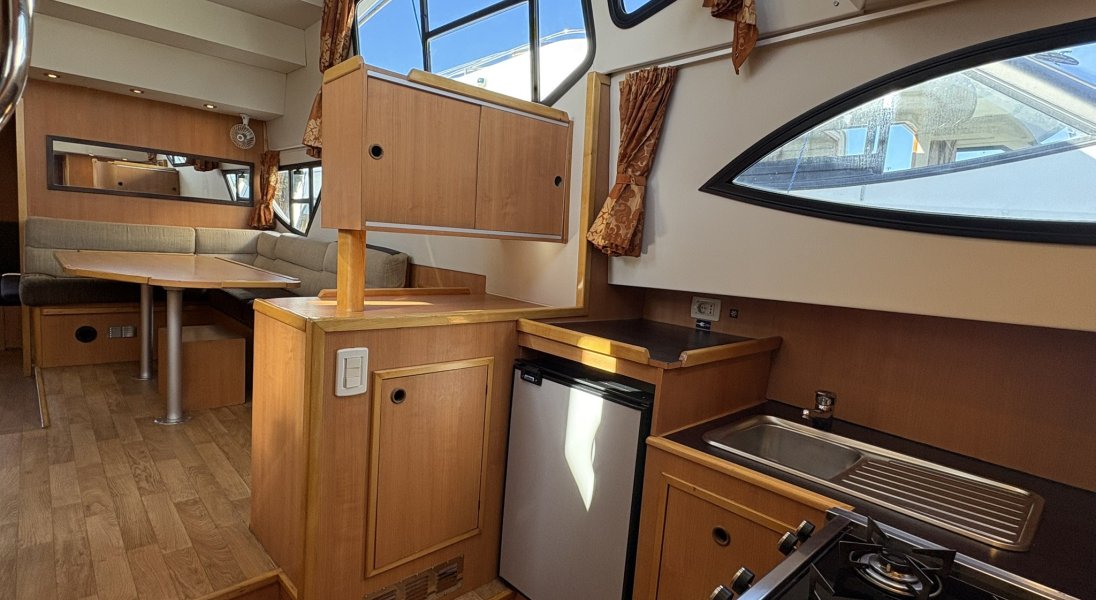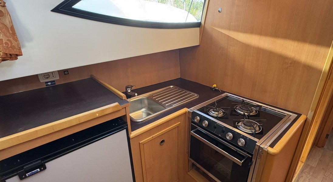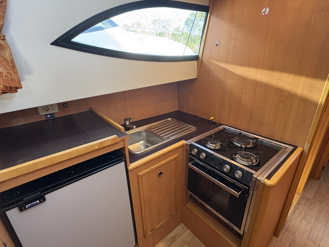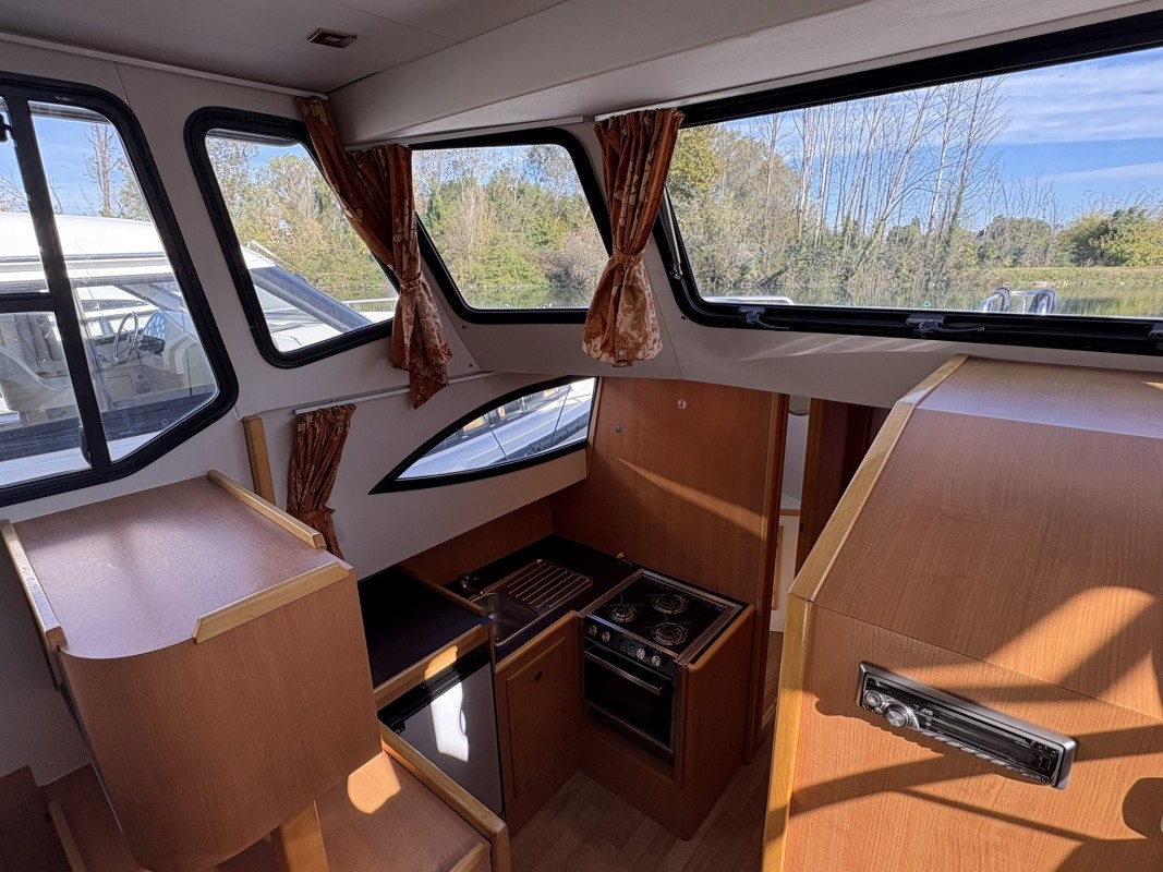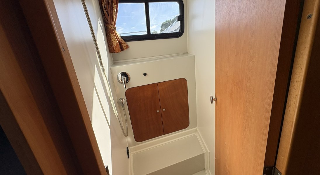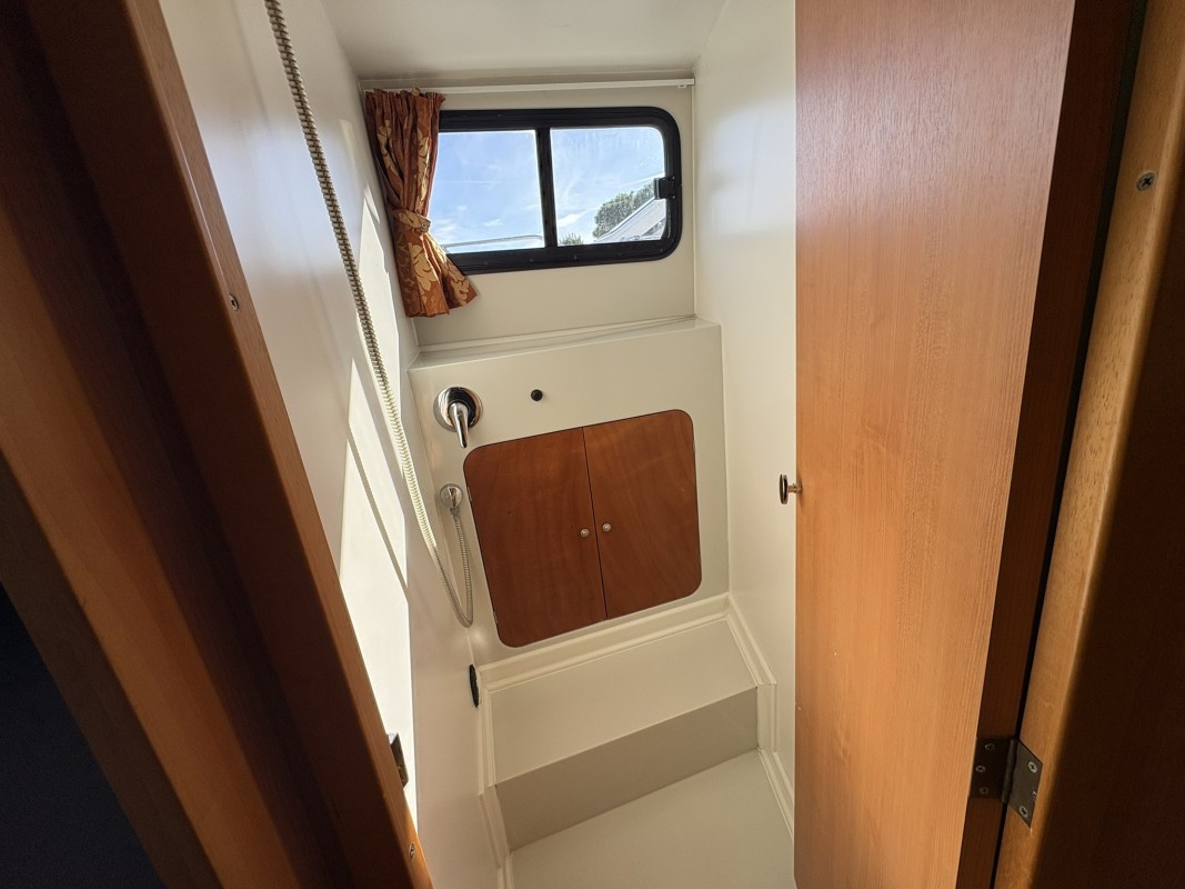 È una classica houseboat fluviale di impostazione nordica con una abitabilità incredibile, altezze come a casa, ed un piccolo motore diesel singolo. È adatta alla navigazione in acque protette o con mare molto calmo.