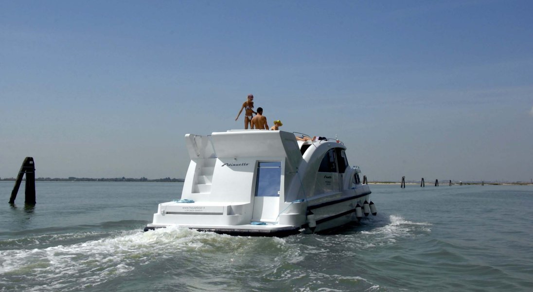 Imbarcazione tipo Houseboat dagli spazi molto generosi, altezze interne domestiche, 3 cabine. Utilizzata in compagnia di charter.