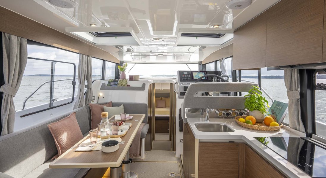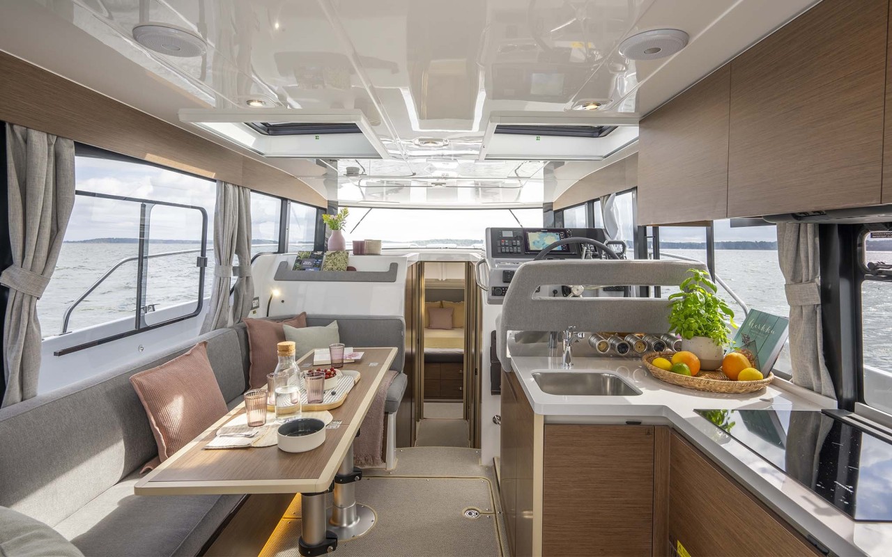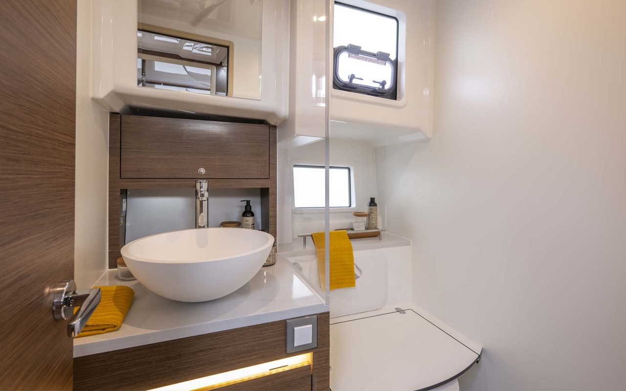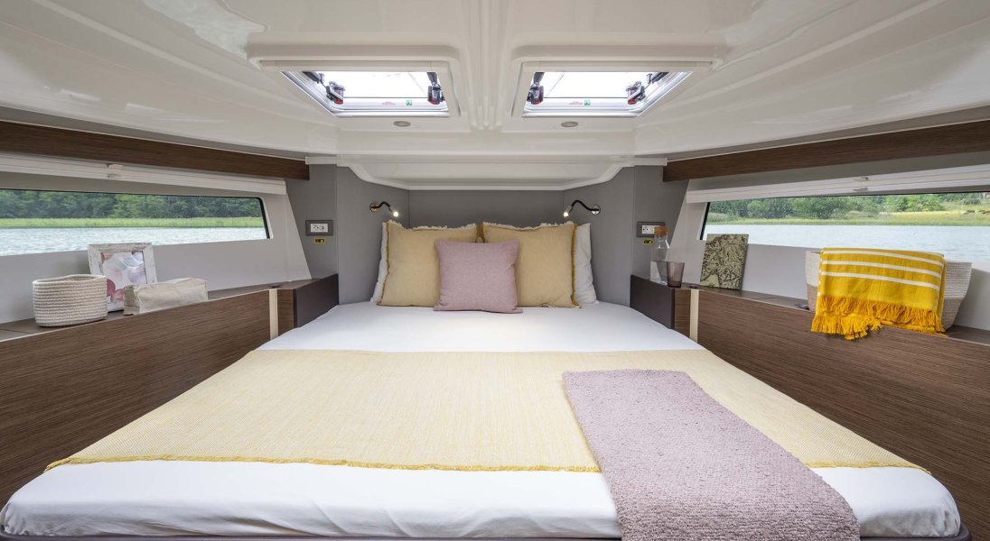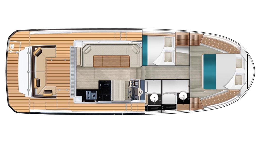 La scelta più apprezzata e diffusa, capace di ospitare fino a tre cabine matrimoniali e due bagni. Soluzioni ricercate e di alta qualità impreziosiscono tutte le aree di bordo, dagli interni della dinette agli spazi del pozzetto.