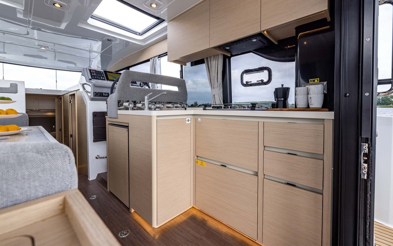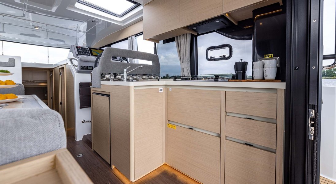 Modulo cucina completo di Lavabo, scompartimenti con finecorsa ammortizzato, armadietti e scomparti di stivaggio