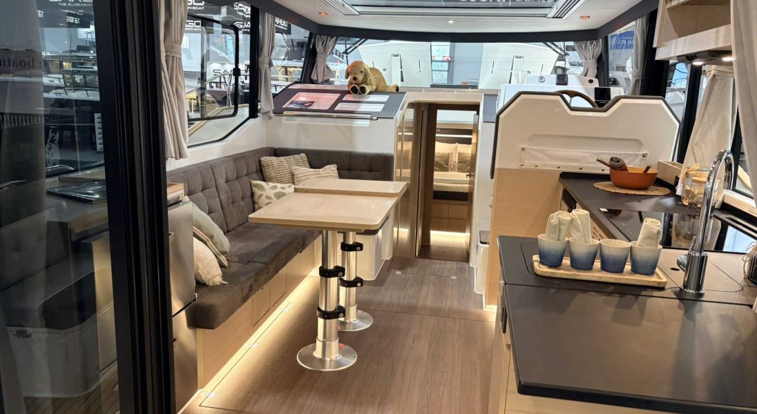 PACK DI ORMEGGIO 2026, 230V/50Hz Ancora zincata tipo "Delta", 20 kg incl. 60 m, catena zincata da 8 mm incl. 4 cime di ormeggio, 14 mm e 10 parabordi Verricello elettrico da 700 W con comando dalla posizione di comando incl. contacatena 2 bitte a metà scafo + 2 bitte di ormeggio a poppa per l'ormeggio trasversale Protezione delle murate in acciaio inox (sulle bitte di ormeggio) + 2 corrimano aggiuntivi
