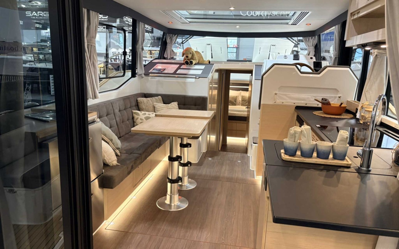 Lucernario in plexiglass con persiana Hercules + botole con zanzariere nella parte superiore della timoneria - sopra il fornello e il divano del salone