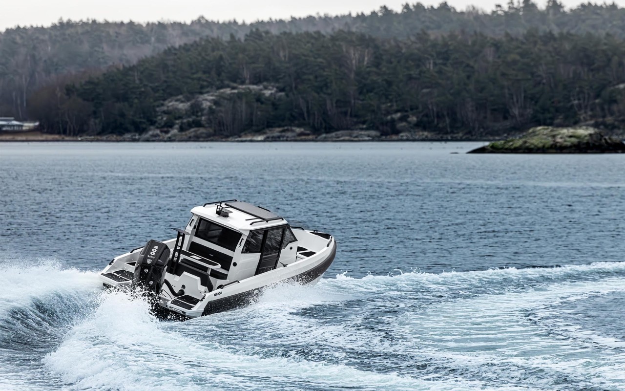 La protezione totale della versione cabinata offre un comfort di navigazione nettamente superiore alla soluzione T-Top. Eleganza e sportività si fondono in un design slanciato dal carattere audace.