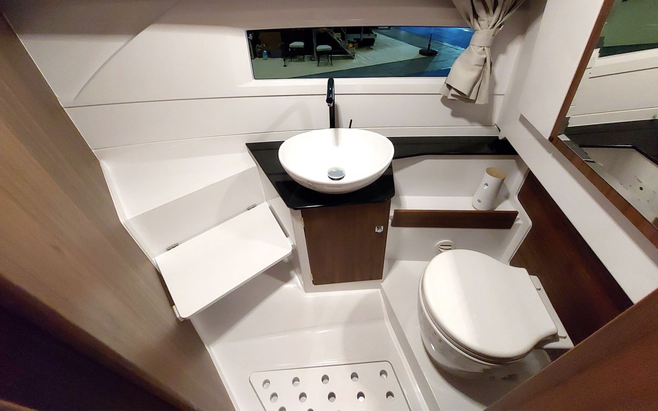WC elettrico con serbatoio acque nere da 80L e maceratore. Predisposizione per aspirazione esterna del serbatoio