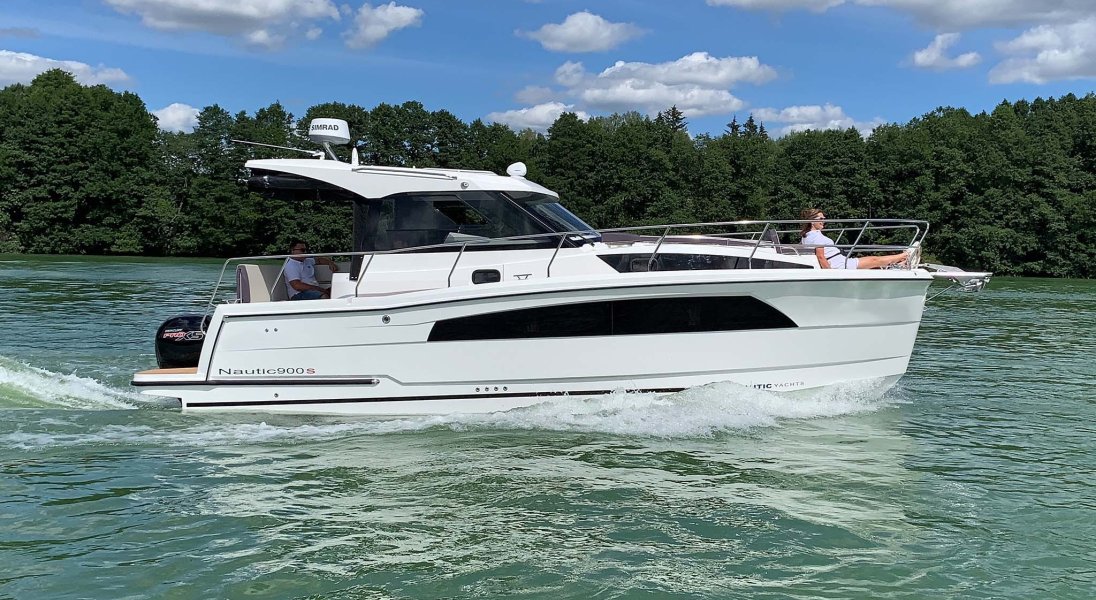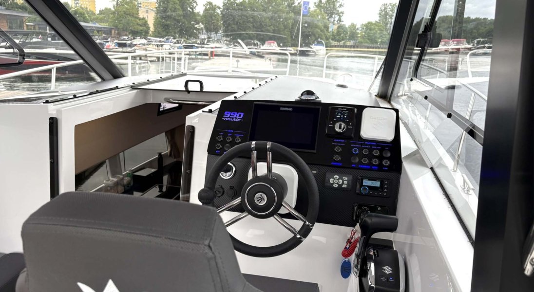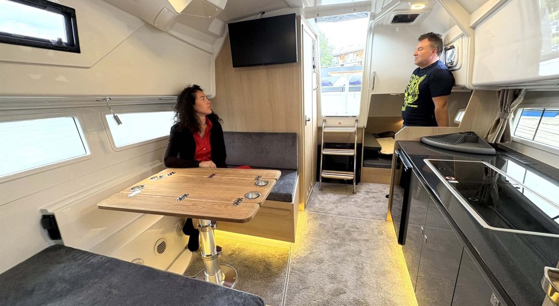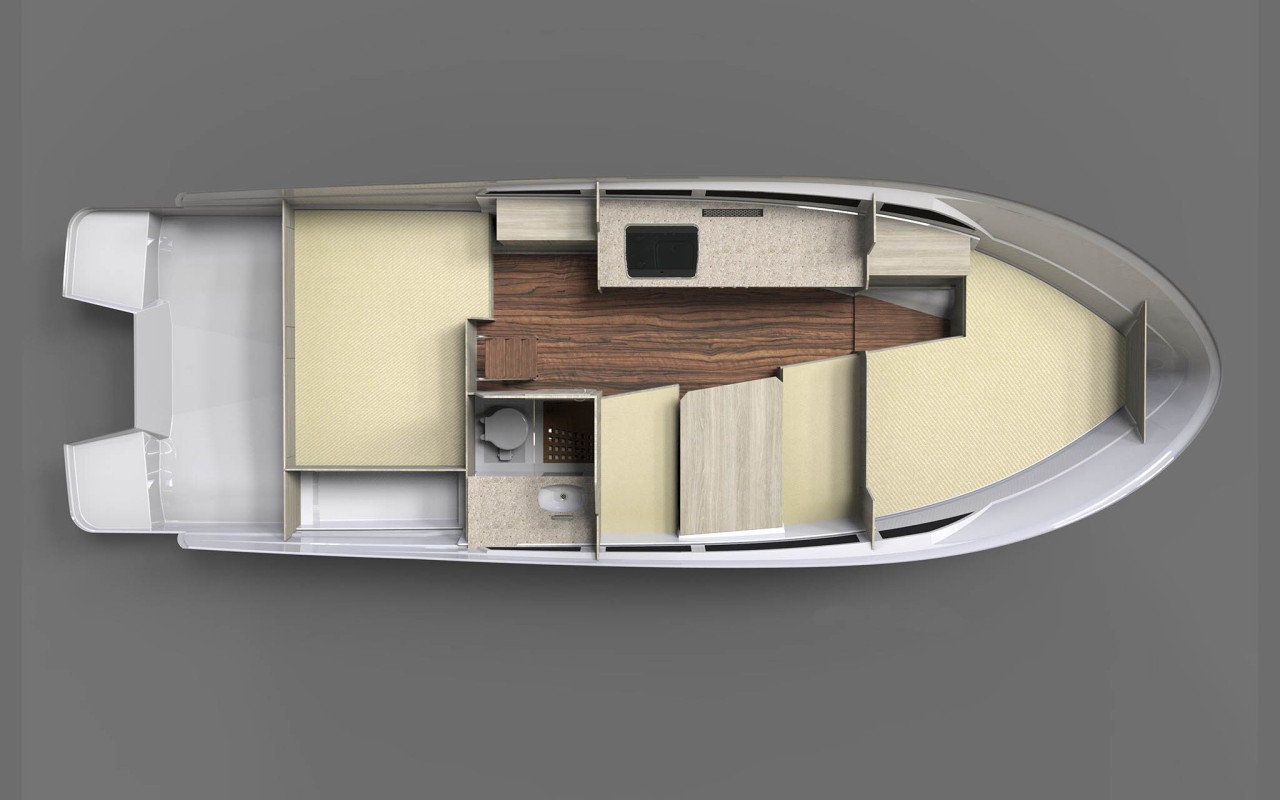 Gli interni garantiscono lo spazio necessario per accogliere comodamente una famiglia di quattro persone, senza compromessi. Il ponte superiore è riparato da un hard top, soluzione che genera un equilibrio perfetto tra le aree coperte e quelle all'aperto.